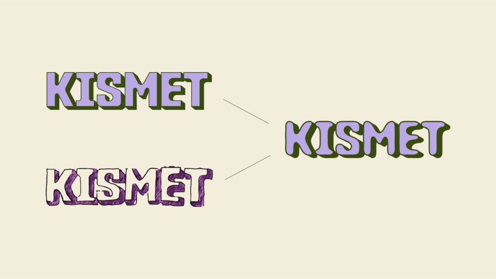 Kismet currently uses both a structured logo and a more expressive hand-drawn version. For the Friday events, the team wanted a graphic direction that would sit somewhere between these two styles—retaining the recognizability of the existing brand while introducing a more playful and illustrative feel suited to the atmosphere of the events.