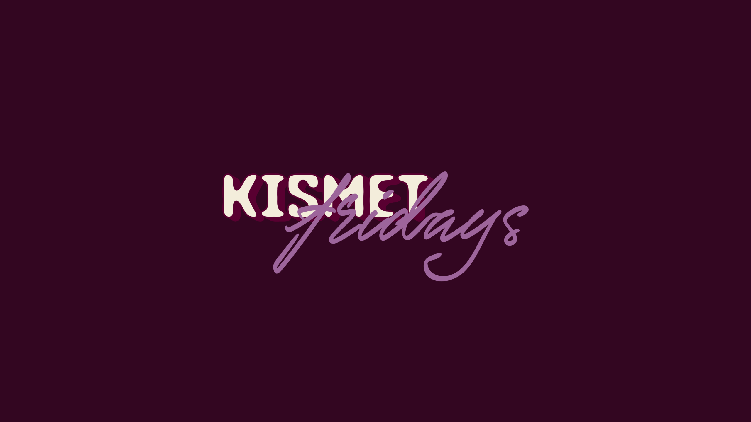 This softer take on the logo captures the spontaneous spirit of Kismet Fridays. Slightly more unstructured than usual, ever-changing, and a little loose, it’s all about making your Friday evenings fun, cozy, and full of surprises. Sometimes it’s wine tasting, sometimes pizza or cocktails—it’s meant to be a playful way for Kismet to explore new concepts.
